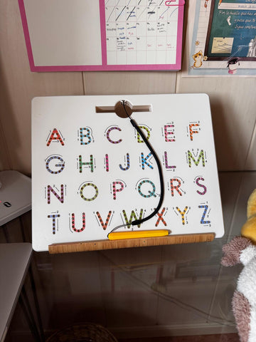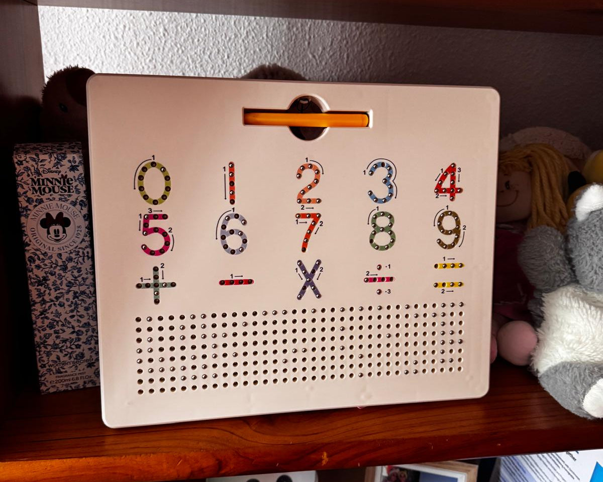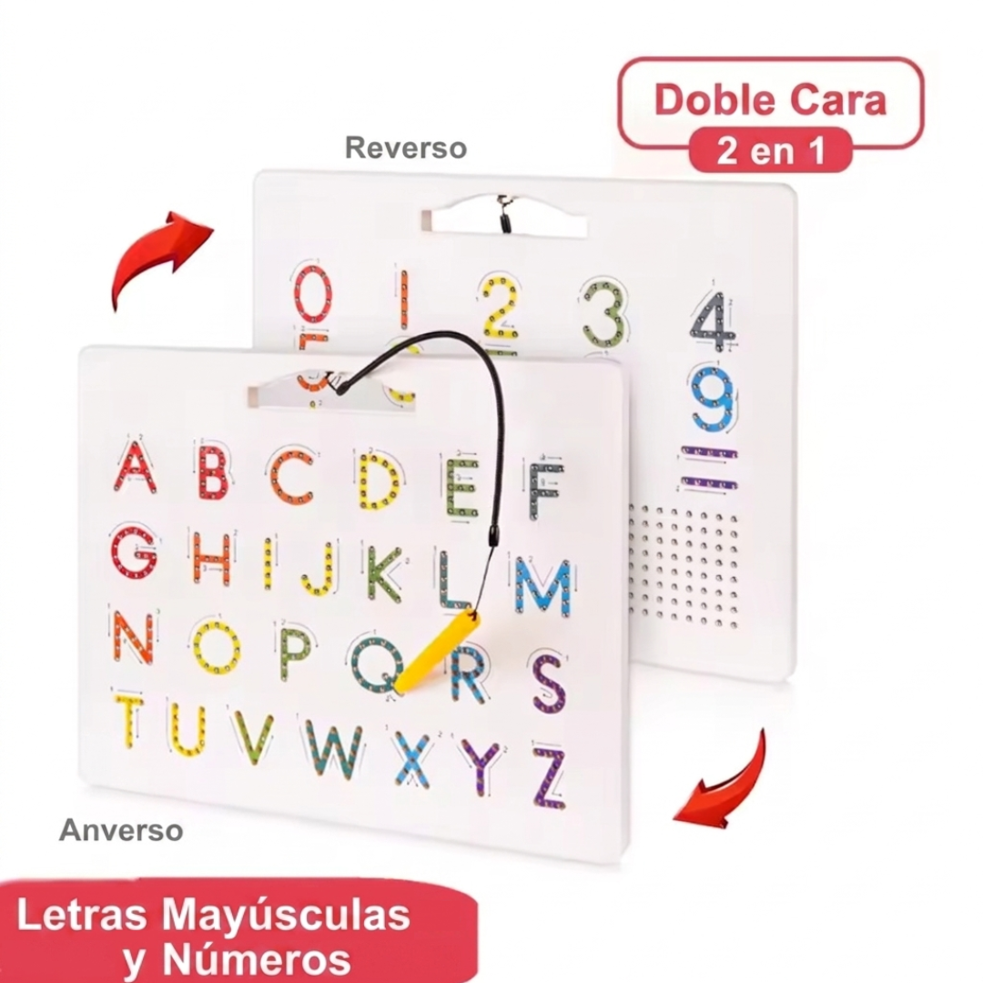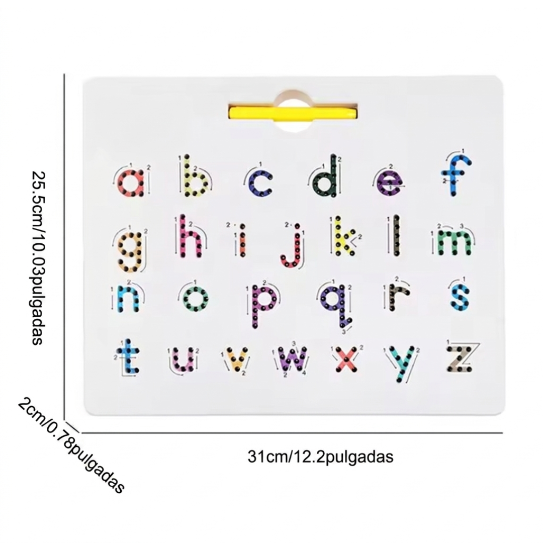 El sistema magnético guía el trazo de forma fácil y entretenida. Además, su diseño con bordes redondeados es seguro y perfecto para manos pequeñas.